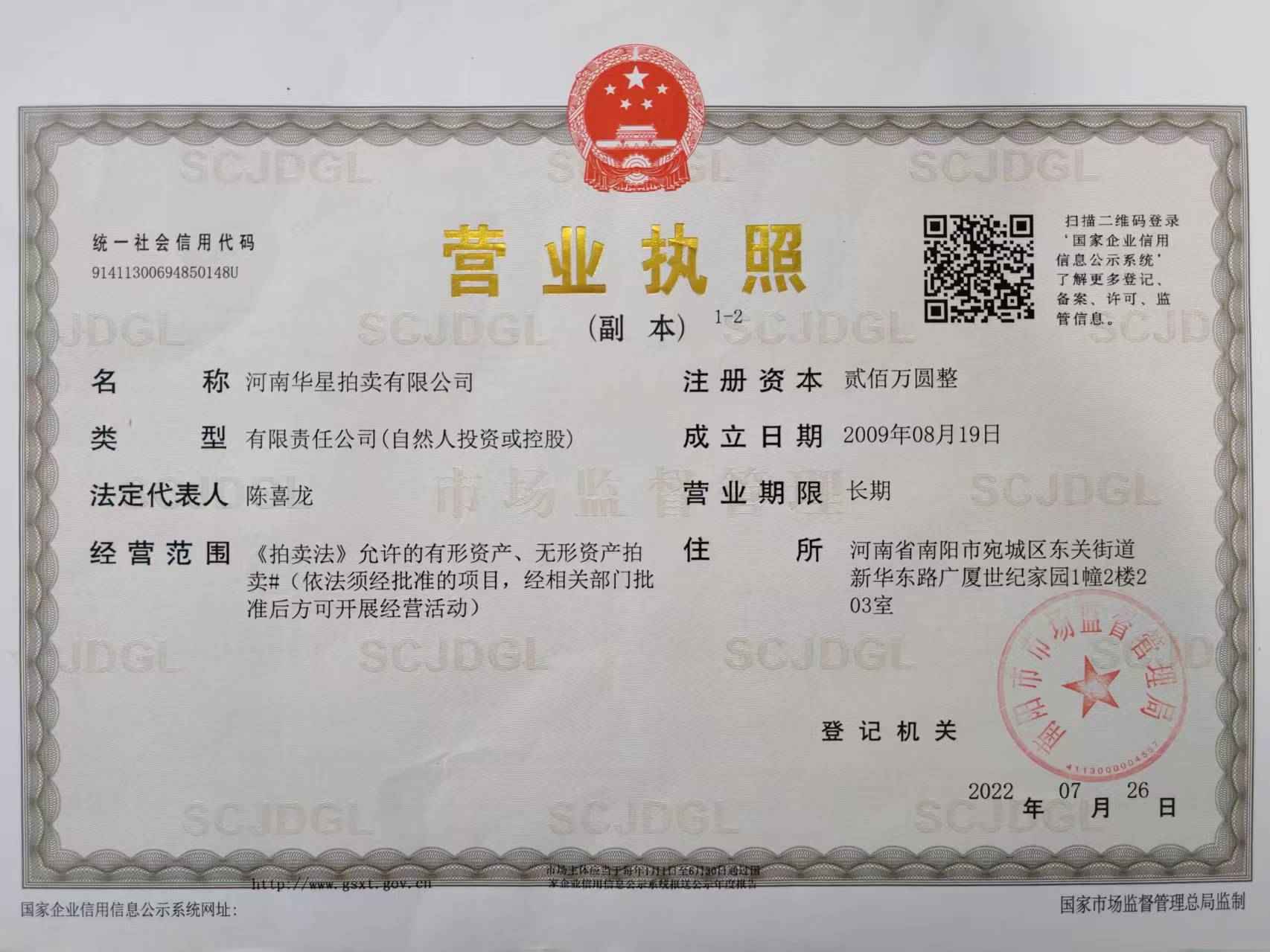 Copyright@2025-2026 河南華星拍賣有限公司 AllRights Reserved 版權(quán)所有. |