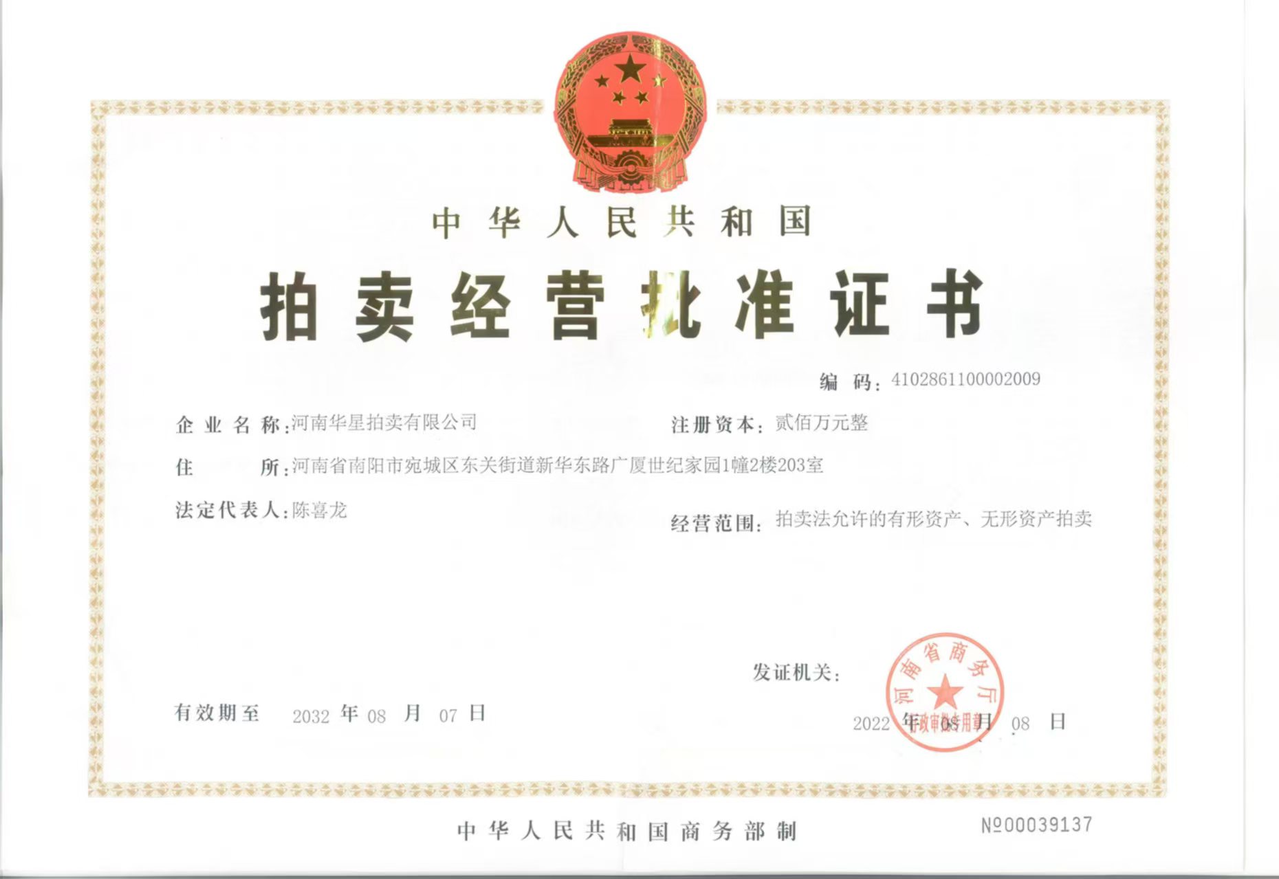 Copyright@2025-2026 河南華星拍賣有限公司 AllRights Reserved 版權(quán)所有.