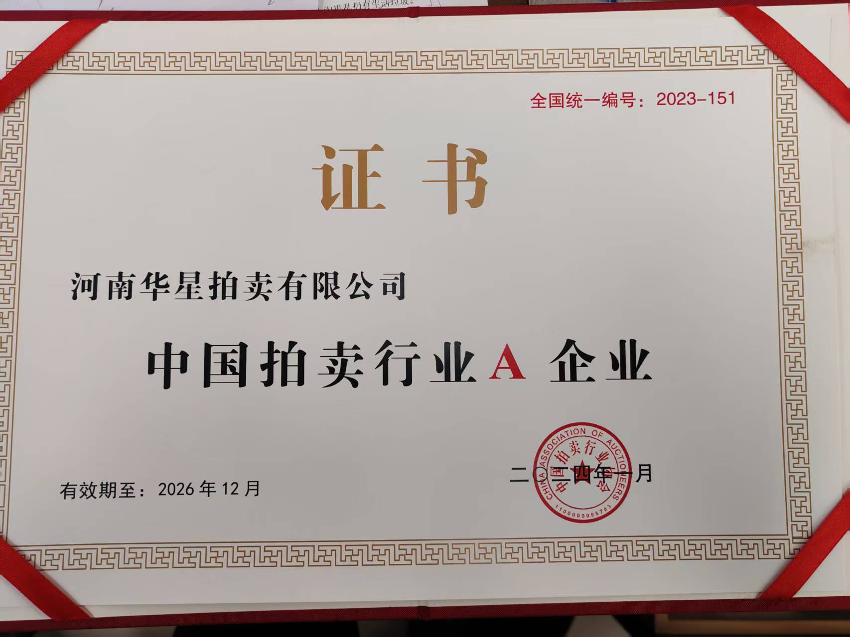 2023年12月我公司經中拍協全國拍賣企業(yè)等級評估工作辦公室評為A級企業(yè)